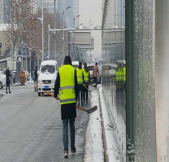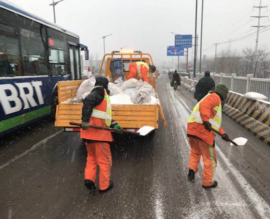 此次除雪工作豐達(dá)公司共計(jì)出動(dòng)人員1000余人次,機(jī)械設(shè)備380臺(tái)班,使用融雪劑、黃砂、石子等除雪物料900余噸。