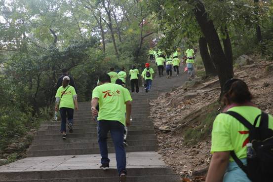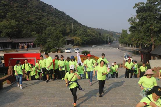 途中,大家興高采烈,談笑風(fēng)生,時(shí)而你追我趕、奮力攀爬,時(shí)而互相鼓勵(lì)、攜手并進(jìn),整個(gè)登山過(guò)程洋溢著溫馨、愉悅的氛圍,大家享受著登山的樂(lè)趣,向終點(diǎn)進(jìn)發(fā)。從花果山山門(mén)到九龍橋,最考驗(yàn)大家體力的是十八盤(pán),十八盤(pán)位于花果山腰部的竹節(jié)嶺上,349級(jí)石階層層相迭,巧相搭構(gòu),通向嶺端,隨著高度的不斷攀升,加之蜿蜒崎嶇的山路起伏跌宕,不少職工累的氣喘吁吁,大汗淋漓,但是大家仍然興致盎然,朝著目標(biāo),不停地向上攀登。