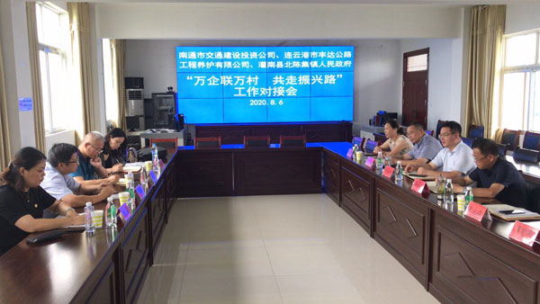 為積極服務(wù)鄉(xiāng)村振興戰(zhàn)略,8月6日,豐達(dá)養(yǎng)護(hù)公司與南通交通建設(shè)投資公司、灌南縣北陳集鎮(zhèn)人民政府在灌南縣北陳集鎮(zhèn)召開(kāi)了“萬(wàn)企聯(lián)萬(wàn)村,共走振興路”工作對(duì)接會(huì)。南通交通建設(shè)投資公司副書(shū)記張燕濱、豐達(dá)養(yǎng)護(hù)公司總經(jīng)理王梁洲和北陳集鎮(zhèn)人民政府黨委書(shū)記周倍良等相關(guān)人員參加了會(huì)議。