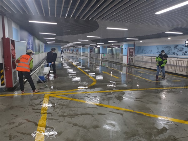 ? ? ? 為全面提升綜合客運樞紐停車場“五一”節(jié)前現(xiàn)場環(huán)境衛(wèi)生,為廣大旅客提供干凈整潔的出行環(huán)境。4月29日晚,在連云港站******一列火車運營下客結(jié)束后,豐達(dá)物業(yè)管理公司組織了10名員工,對客運樞紐地下停車場出租車道、社會車道等主要通道的地面痰跡、污跡、頑跡等進行了全面清理,清理面積近3500平米。