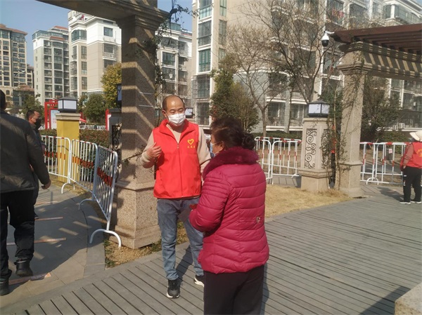 黨員董入龍在河畔花城小區(qū)配合社區(qū)做好維持核酸檢測隊伍秩序、查驗蘇康碼等志愿服務(wù)活動