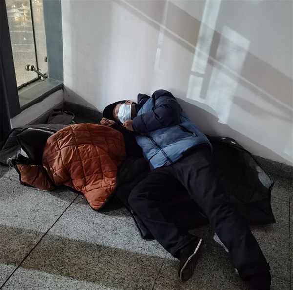王祎為滯留人員發(fā)放簡餐和宣傳防疫科學知識