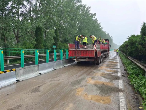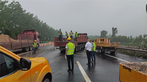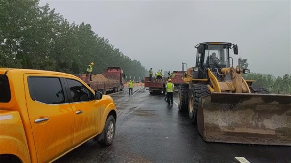 豐達(dá)公司寧連高速D標(biāo)項目部接到上級電話通知,立即組織應(yīng)急處置人員與車輛第一時間到達(dá)現(xiàn)場清理。項目部組織應(yīng)急隊伍32人,工程車輛12輛趕赴現(xiàn)場,迅速開展現(xiàn)場清理、沙石吸附、清掃推灰。直至10:26分,經(jīng)施工人員多方努力,路面油污終于清理干凈,受污染路面消除了安全隱患,道路恢復(fù)了暢通。