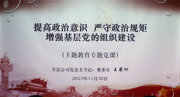 根據(jù)豐達(dá)公司主題教育工作安排,在11月30日上午,豐達(dá)公司黨總支書記、董事長王梁洲同志以“提高政治意識(shí)、嚴(yán)守政治規(guī)矩、增強(qiáng)基層黨的組織建設(shè)”這個(gè)主題,向中層干部、黨員和入黨積極分子講授專題黨課。