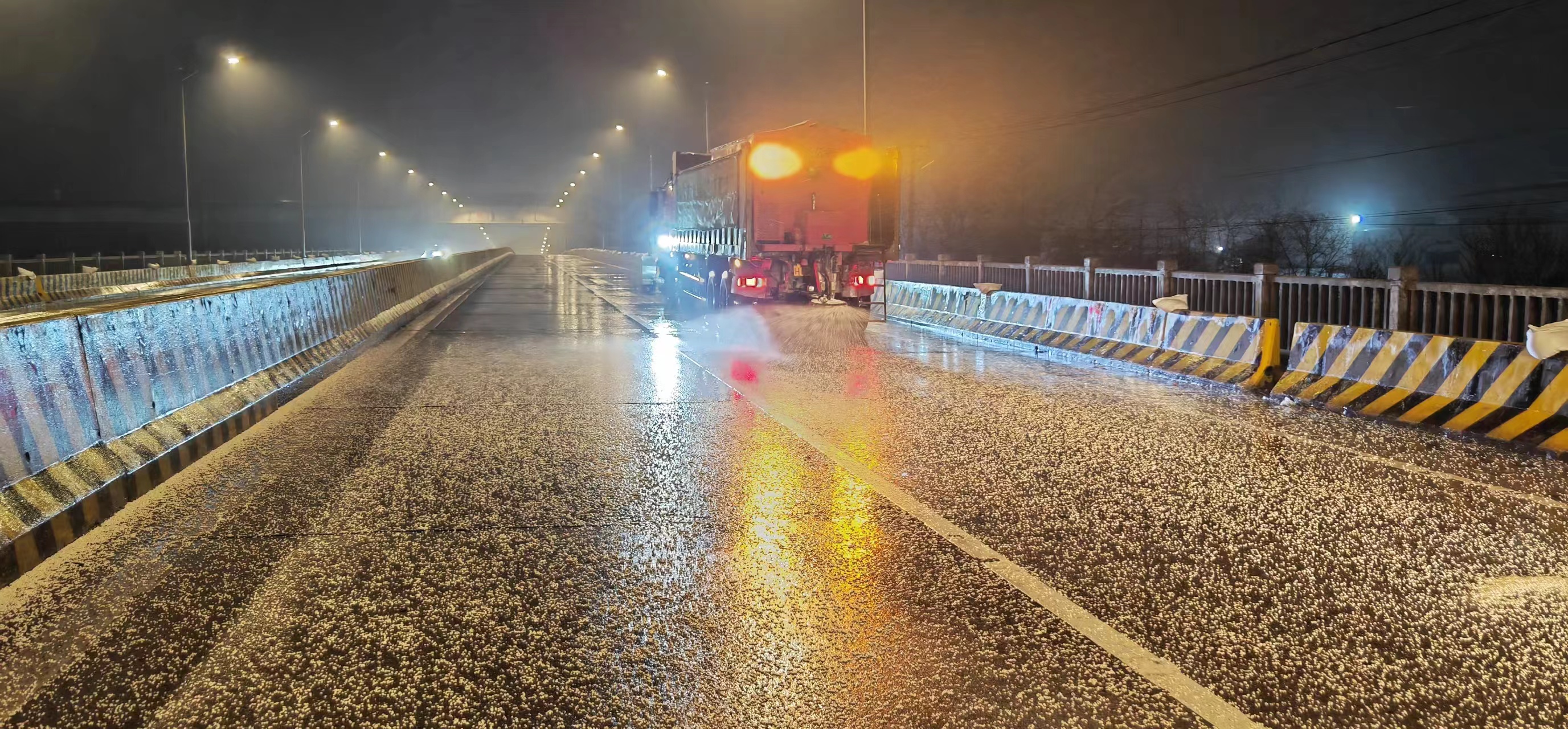 為了保證公司管養(yǎng)道路安全暢通,公司干部職工連夜奮戰(zhàn)除雪防滑一線。截止目前,共出動(dòng)160余人、機(jī)械設(shè)備35臺(tái)套、撒布融雪劑和防滑混合料400余噸。