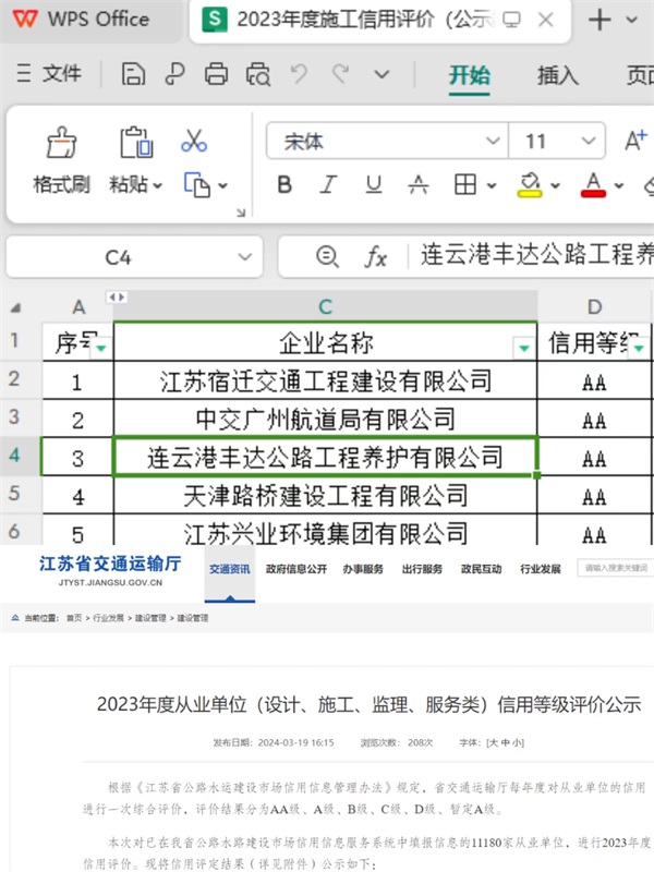 近日,江蘇省交通運(yùn)輸廳建設(shè)管理處公布了2023年度從業(yè)單位(設(shè)計、施工、監(jiān)理、服務(wù)類)信用等級評價結(jié)果,豐達(dá)公司首次榮獲年度施工信用評價AA級。