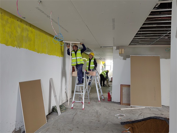 在集團(tuán)辦公樓改造工程項(xiàng)目現(xiàn)場(chǎng),為保證項(xiàng)目?jī)?yōu)質(zhì)交付,施工人員依然奮戰(zhàn)在施工一線,項(xiàng)目已完成所有樓層墻體拆除、梁加固、給排水、空調(diào)室內(nèi)機(jī)安裝、消防系統(tǒng)、智能化系統(tǒng)、排風(fēng)系統(tǒng)施工任務(wù),內(nèi)裝水電、木工同步按序時(shí)進(jìn)度進(jìn)行?!凹倨谄陂g,項(xiàng)目70多人依然加班加點(diǎn)在施工一線奮戰(zhàn),為保證按時(shí)保質(zhì)保量順利交工,大家齊心協(xié)力,相互配合,站好項(xiàng)目收官******一班崗。”項(xiàng)目生產(chǎn)經(jīng)理?xiàng)蠲髡f。