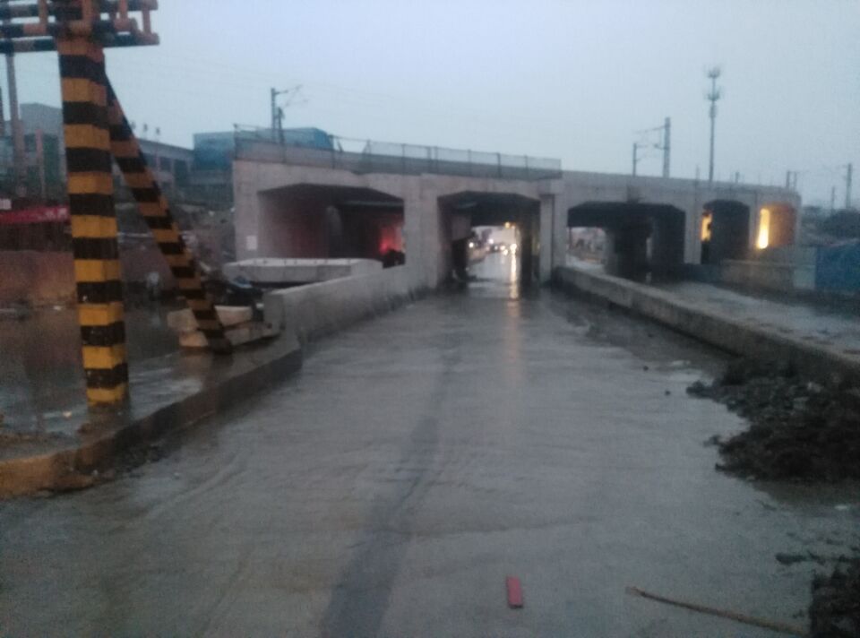 2016年12月20日下午2時(shí)左右,因鐵路單位在解放東路橋西提拔鋼板樁施工時(shí)擠裂自來水水管,造成自來水爆噴,橋底積水達(dá)70cm。鐵路工人撥打自來水搶修電話,自來水公司人員告知施工單位,因需要保障周邊居民生活用水,暫時(shí)不能停水,如停水,需報(bào)市政府同意,因此到晚上7時(shí)才關(guān)掉管道閥門停水。豐達(dá)公司得知此情況后,豐達(dá)公司領(lǐng)導(dǎo)親臨一線,協(xié)助路政人員做好現(xiàn)場封閉交通工作并和應(yīng)急搶險(xiǎn)人員檢查出通往泵房的過水管道已被淤塞,豐達(dá)公司緊急調(diào)動(dòng)應(yīng)急設(shè)備對積水進(jìn)行排除,截止21日上午6時(shí)30分排完橋底積水,實(shí)現(xiàn)道路通行。此次緊急疏通保暢工作共計(jì)出動(dòng)應(yīng)急搶修人員12人,調(diào)動(dòng)機(jī)械設(shè)備:移動(dòng)電站1臺(tái)、污水泵2臺(tái),工具車1臺(tái)、翻斗車1臺(tái)。