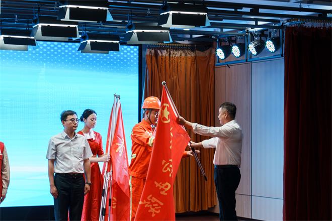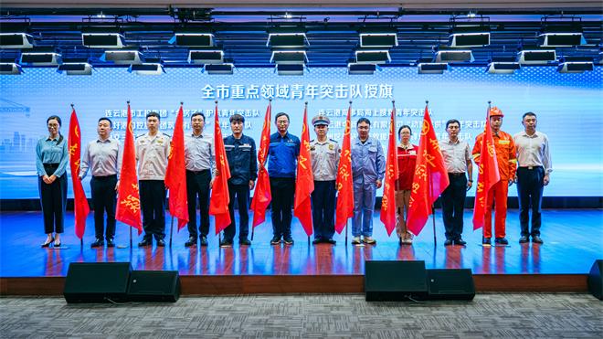 5月23日,團(tuán)市委聯(lián)合市委市級(jí)機(jī)關(guān)工委、市發(fā)改委、市民政局、市應(yīng)急管理局、市消防支隊(duì)在全市深入開展“2025年連云港市服務(wù)重點(diǎn)企業(yè)、重大項(xiàng)目青年發(fā)展項(xiàng)目”啟動(dòng)儀式。豐達(dá)公司作為重點(diǎn)領(lǐng)域青年突擊隊(duì)代表上臺(tái)接受授旗,以一抹亮眼橙色閃耀全場(chǎng),接過(guò)了象征使命與擔(dān)當(dāng)?shù)那啻簯?zhàn)旗。