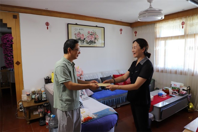 在公司黨總支紀(jì)檢委員、工會主席孫婷同志的帶領(lǐng)下,慰問小組深入困難職工家中,與他們面對面交流,詳細(xì)了解家庭生活、健康狀況等情況,認(rèn)真傾聽他們的實(shí)際需求和困難,鼓勵他們堅(jiān)定信心、樂觀生活。同時(shí),為困難職工家庭送上了月餅、米、面、油等節(jié)日慰問品及慰問金,把公司的關(guān)愛送到職工心坎上。一句句暖心話語,一份份沉甸甸的慰問品,傳遞著豐達(dá)公司“以人為本”的公司溫度,也增強(qiáng)了職工對公司的認(rèn)同感和歸屬感。