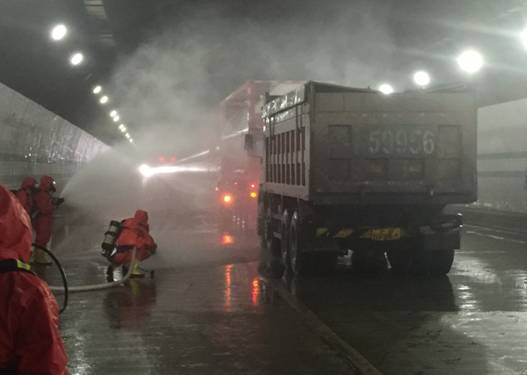 此次演練模擬場景是:一輛載有丙烯晴槽罐車在疏港隧道出港過程中,后側(cè)一貨車由于避讓不及撞上槽罐車,造成追尾事故。事故致使貨車駕駛員被困,槽罐車發(fā)生泄漏,貨車駕駛室內(nèi)人員傷亡情況不明的現(xiàn)場狀況。