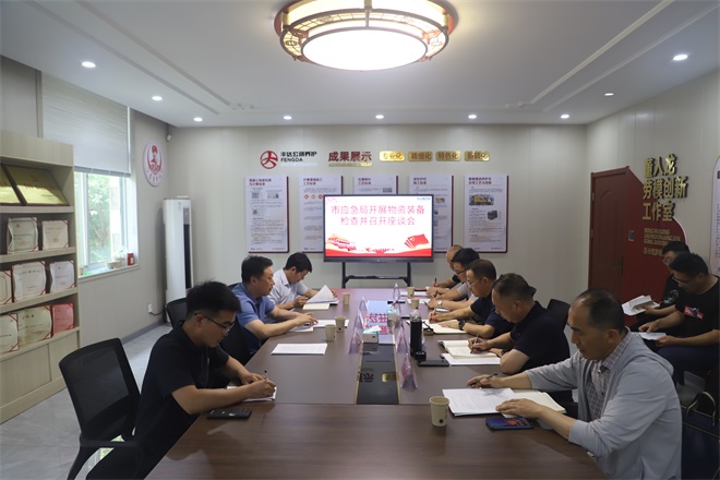 錢成勇一行對應急處置中心的應急救災物資裝備管理情況進行檢查,根據(jù)物資庫租用合同,主要查看是否落實專人看管物資庫、庫內(nèi)物資日常管理情況、看管人員是否熟悉物資庫信息化系統(tǒng)操作及介紹等情況。隨后檢查組召開物資管理座談會,聽取豐達公司關(guān)于物資庫交接后的運行情況、主要問題與困難、物資庫使用效能提升措施,以及下一步應急演練計劃的專題匯報。