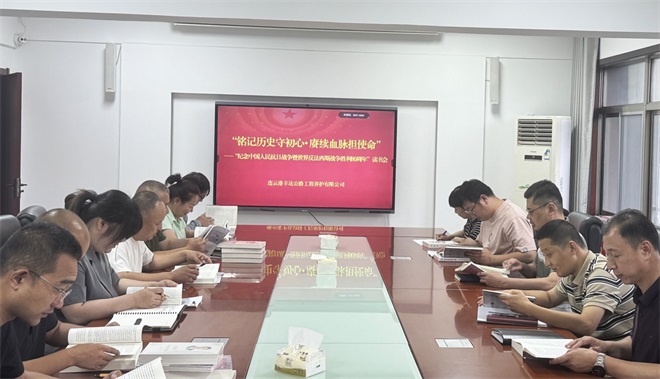 為開展好讀書會,公司提前購置《抗日戰(zhàn)爭》《紅星照耀中國》《南京大屠殺》《中國抗戰(zhàn)》等書籍,分發(fā)到各部門、各項目工地,鼓勵大家工作之余主動閱讀原文深入了解偉大的抗戰(zhàn)歷史,傳承偉大抗戰(zhàn)精神。會上,公司人力資源部負(fù)責(zé)人張柱連領(lǐng)學(xué)習(xí)近平總書記在紀(jì)念中國人民抗日戰(zhàn)爭暨世界反法西斯戰(zhàn)爭勝利80周年大會上的重要講話精神,引導(dǎo)大家深刻領(lǐng)悟偉大抗戰(zhàn)精神的內(nèi)涵實質(zhì)與時代價值。參會人員分別誦讀了《抗日戰(zhàn)爭》《南京大屠殺》《中國抗戰(zhàn)》等有關(guān)章節(jié),引導(dǎo)大家一起回憶那段艱苦卓絕、波瀾壯闊的崢嶸歲月,共同追憶革命先輩的崢嶸歲月和豐功偉績;并結(jié)合當(dāng)前國際國內(nèi)形勢、自身工作實際,分享閱讀感悟,交流思想體會。