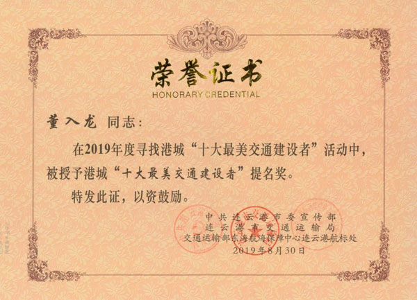 董入龍-十大最美交通建設(shè)者提名獎(jiǎng)